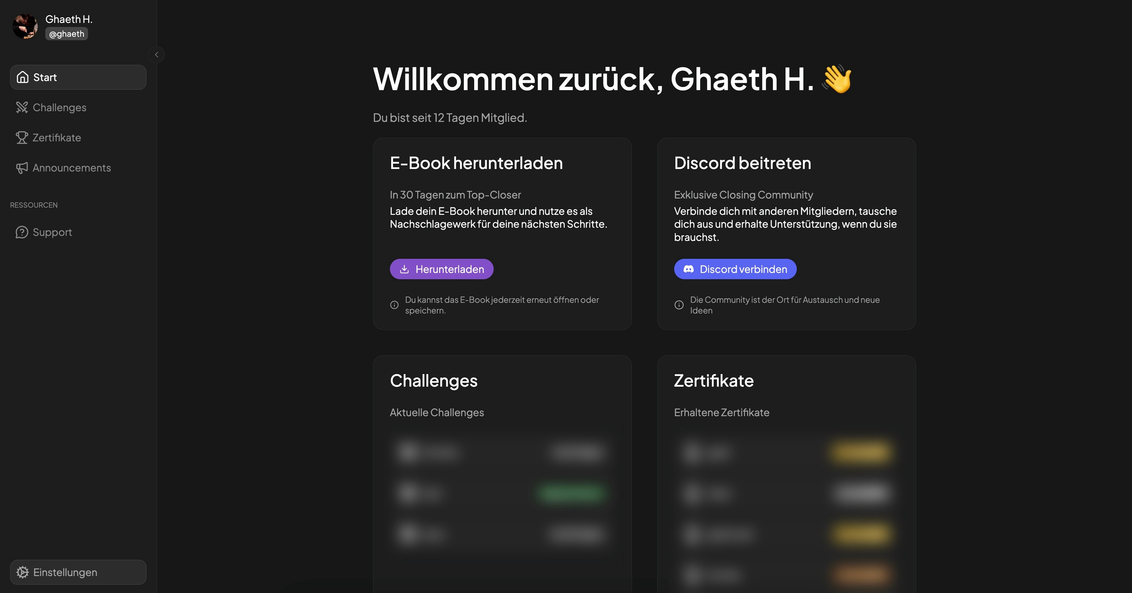 Closier läuft über eine eigene, geschlossene Plattform.So stellen wir sicher, dass jedes Mitglied den maximalen Fortschritt und Erfolg erreicht.